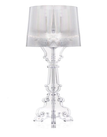 Bourgie unites classicism, wealth and tradition with technological innovation. The baroque-style base consists of three decorated elements that interlock, while the large shade is created with a pleated effect which creates a multitude of reflections when lit. Thanks to a special system used to hang the shade, three different heights can be obtained, altering them to suit personal preference, depending on the use to be made of the lamp: 68, 73 and 78 centimeters.